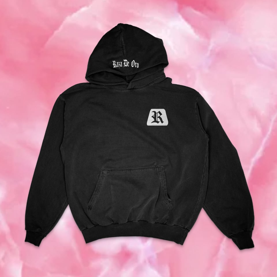 Premium Women's Raza De Oro Hoodie printed on 7oz 100% Cotton with reflective silver paint and embroidered hood with "Raza De Oro".